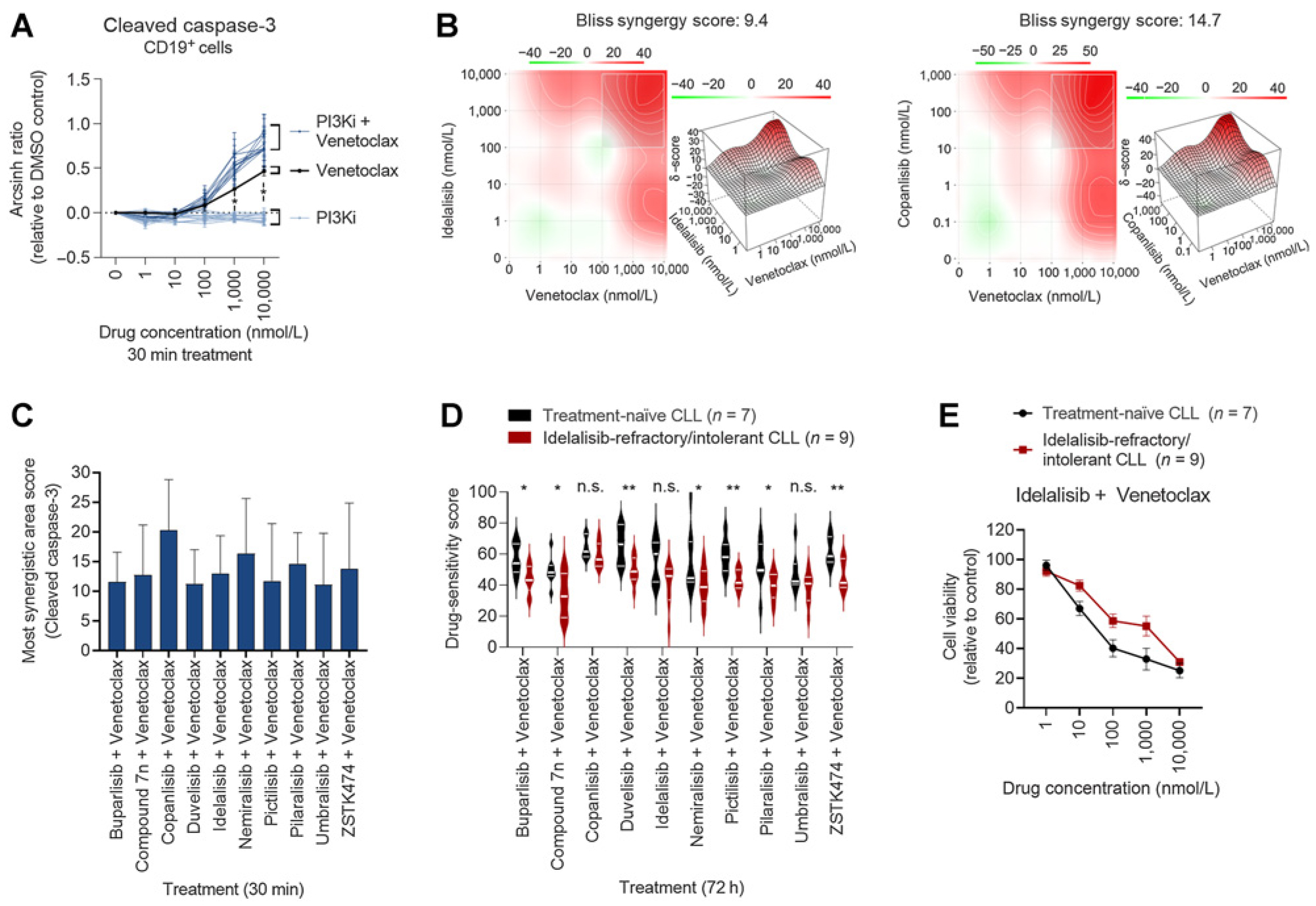 图4. PI3K抑制剂与venetoclax具有协同作用