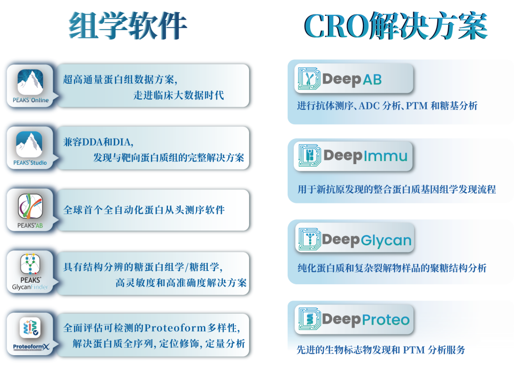 作为生物信息学的领军企业,BSI专注于蛋白质组学和生物药领域,通过机器学习和先进算法提供世界领先的质谱数据分析软件和蛋白质组学服务解决方案,以推进生物学研究和药物发现。我们通过基于AI的计算方案,为您提供对蛋白质组学、基因组学和医学的卓越洞见。旗下著名的PEAKS®️系列软件在全世界拥有数千家学术和工业用户,包括:PEAKS®️ Studio,PEAKS®️ Online,PEAKS®️ GlycanFinder, PEAKS®️ AB,ProteoformXTM ,DeepImmu®️免疫肽组发现服务和抗体综合表征服务等。Email: sales-china@bioinfor.com 电话:021-60919891