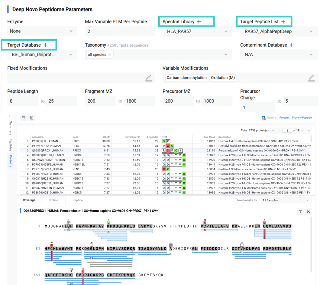 DIA DeepNovo Peptidome workflow在准确性与速度方面均进行了优化,现支持用户自定义“候选列表”,形式可选择谱图库(Spectral Library)或包含样本中预期存在肽段的肽段列表(Peptide List)。