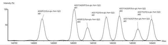 通过精准解卷积对glycoform与PTM进行详细注释,并完成对可检出 proteoform 的鉴定,同步出具其对应的质量与保留时间信息。