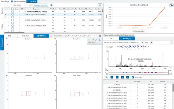 可对含非天然氨基酸、核苷酸的肽段,以及支链肽和环肽进行分析,以满足生物药研发的复杂需求。