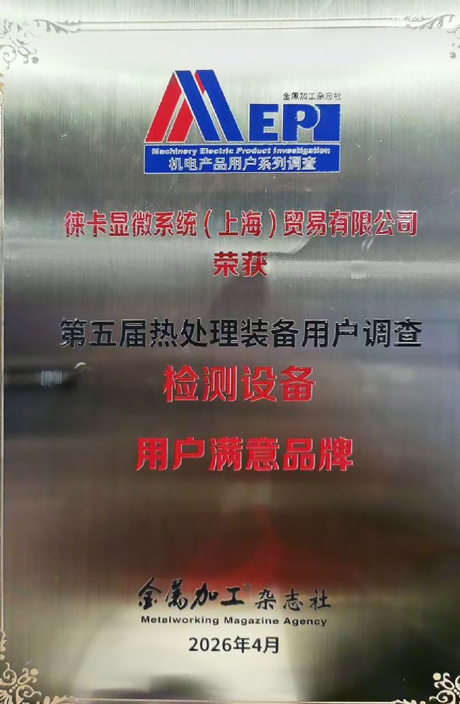 此次获得“用户满意品牌”称号,不仅是一份荣誉,更是一份来自行业用户的信任。未来,徕卡显微系统将持续深耕金相与热处理应用场景,与行业伙伴一道,助力制造业质量升级与技术进步。