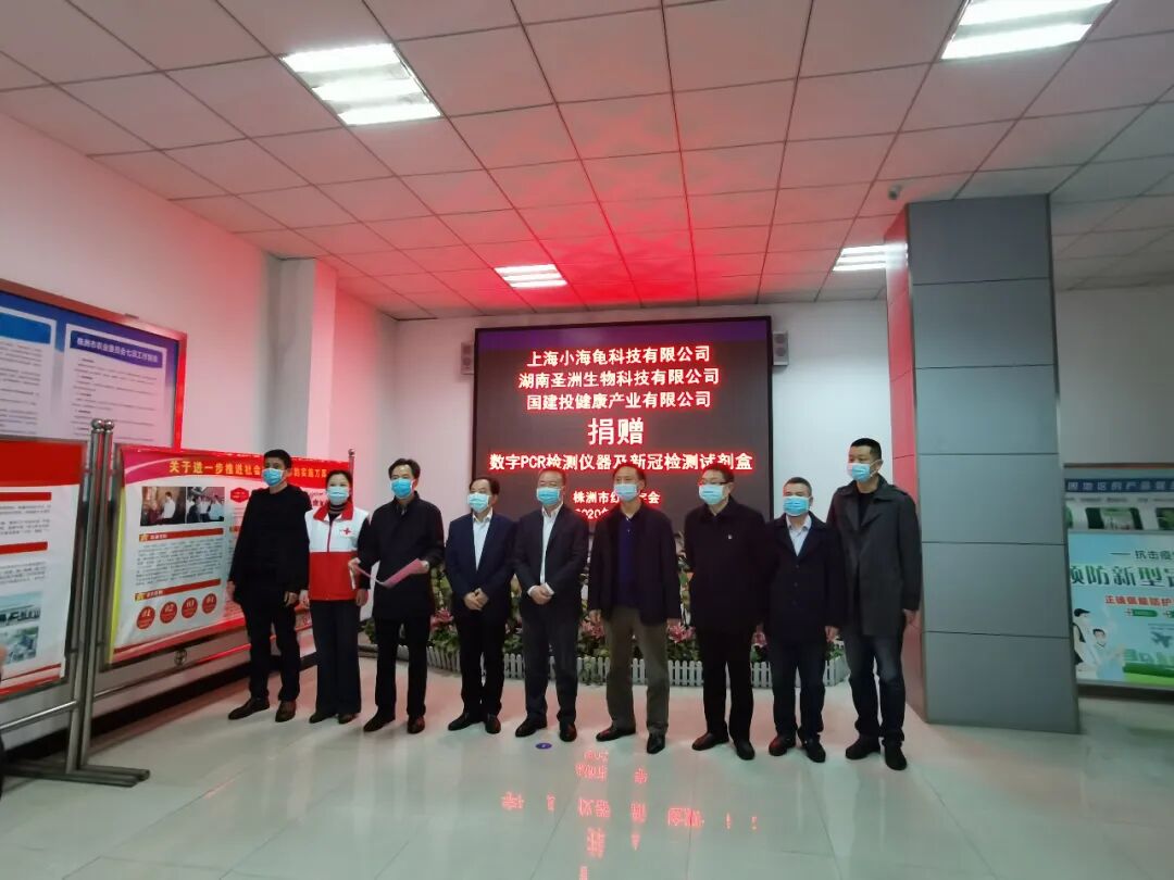 2020年3月23日,上海小海龟科技有限公司联合湖南圣洲生物科技有限公司(株洲)、国建投健康产业有限公司(长沙)通过株洲市红十字会向株洲市中心医院、株洲市疾病预防控制中心分别捐赠全自主研发用于新冠肺炎快速检测的数字PCR核酸检测系统BioDigital·华及配套新型冠状病毒2019-nCoV检测试剂盒和荧光PCR检测试剂盒,总价值139万元。上海小海龟科技有限公司负责人表示,此次捐赠事项是公司积极履行社会责任的一大举措,希望将自主创新的前沿科技产品快速应用到这场新冠病毒肺炎疫情的战斗中去。这是上海小海龟科技有限公司在全国首次向市级医疗卫生机构开展的捐赠活动。在这次疫情防控期间,该公司还联合株洲市中心医院向湖南省科技厅申报了一项新冠肺炎检测新技术科研课题。