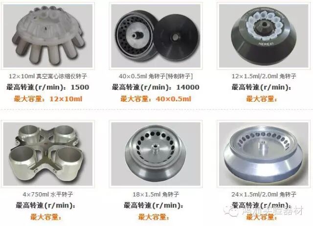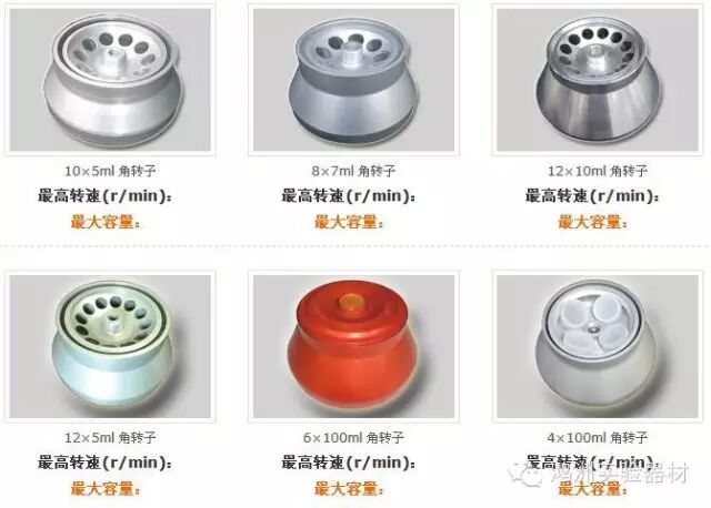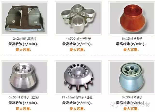 还有一些特殊试验或特殊样本需要特殊的转子如:大容量吊篮、酶标板转子、载玻片转子、PCR转子、试管架转子和毛细管转子等。转子都有固定的规格,它是和离心机的容量结合起来的,如36×5 ml的角转子,既决定了转子的类型也决定了离心机的容量,所以转子的选择非常重要。