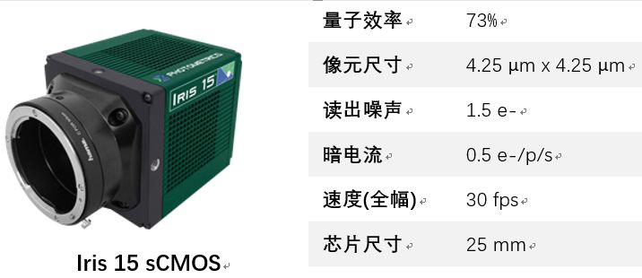 除此之外,速度和视野大小有时也是选择相机要考虑的重要因素。sCMOS相机速度可达100帧/秒,通过选择ROI甚至可达上千帧/秒,远高于CCD相机,更加适合高速成像。同时sCMOS相机芯片尺寸更大,能够拍摄大视野图像,收集到更多的数据。