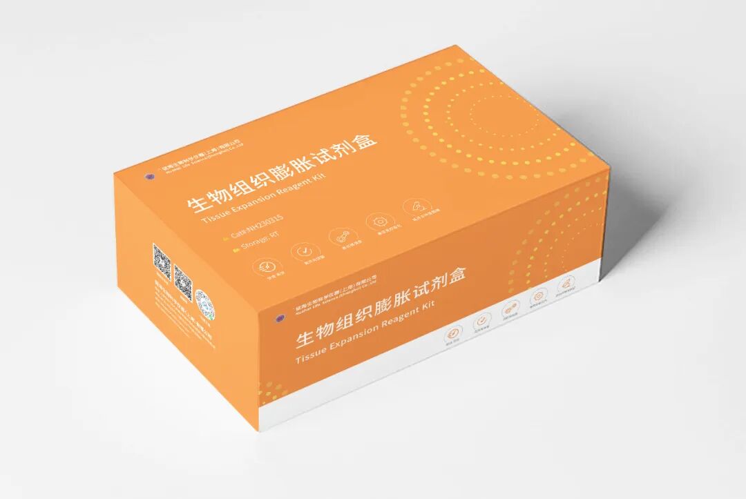 为达到更快速高效、高荧光保留、兼容免疫染色、适用各种显微镜和高生物安全性的透明化需求,锘海在前一代透明化试剂的基础上进行迭代优化配方,升级推出全新的生物组织透明化试剂盒(水性)。同时,锘海还推出新型的生物组织膨胀试剂盒以用于进一步提高透明化生物组织三维成像的分辨率。该试剂盒利用水凝胶网络将生物大分子原位固定,并进行各向同性的三维膨胀,从而达到提高成像分辨率的目的。