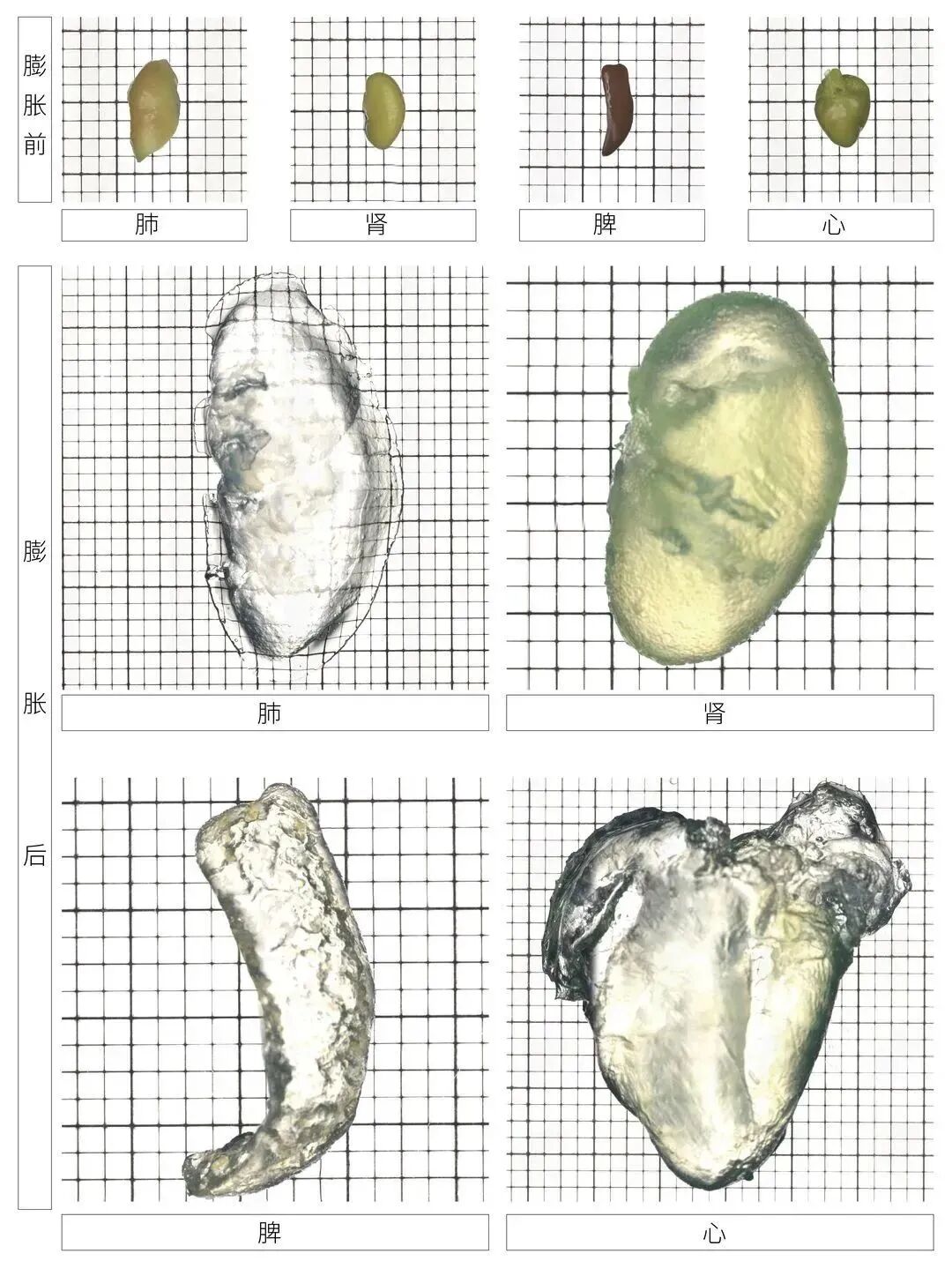 不同器官组织透明膨胀效果: