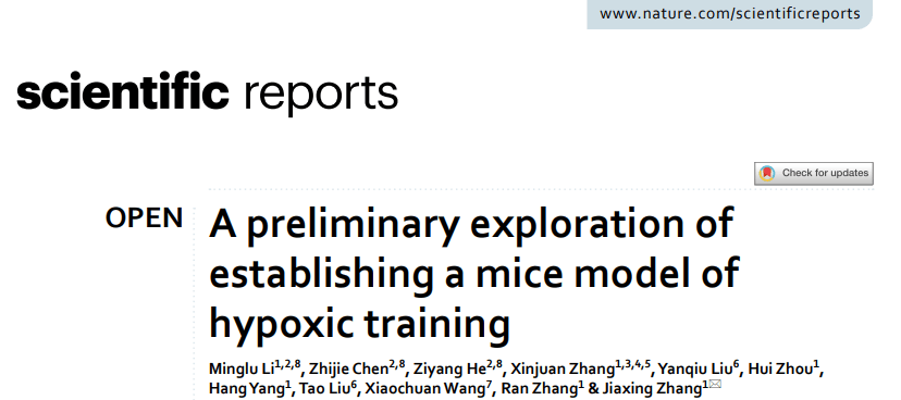 厦门大学张家兴,张然团队合作在《scientific reports》发表文章“A preliminary exploration of establishing a mice model of hypoxic training”,为我们证明缺氧训练的作用:可提升小鼠耐力,缓解缺氧导致的认知障碍(空间记忆)、焦虑抑郁情绪、肌肉流失及脂肪堆积,但对2D/3D视觉能力无显著保护作用,且对肌肉力量提升无明显效果。