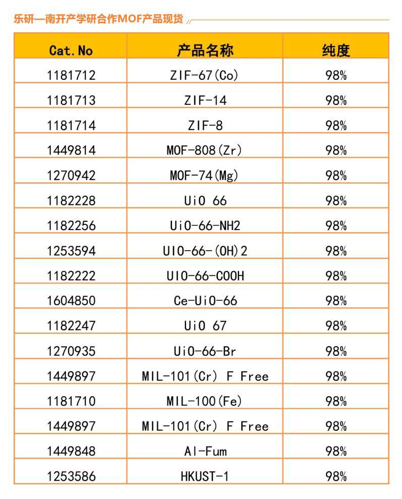 更多MOF产品欢迎访问:MOF有机配体 Metal Organic Frameworks - 乐研试剂(