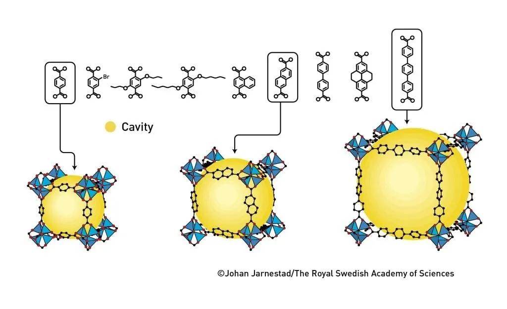 北川 进和亚吉则为这一构建方法奠定了坚实基础。1992年至2003年间,两人各自取得了一系列突破性发现。北川进证明了气体可在该类结构中进出,并预测MOF可被设计为柔性材料。亚吉则制备出稳定性极强的MOF材料,并证明可通过合理设计赋予其新特性。
