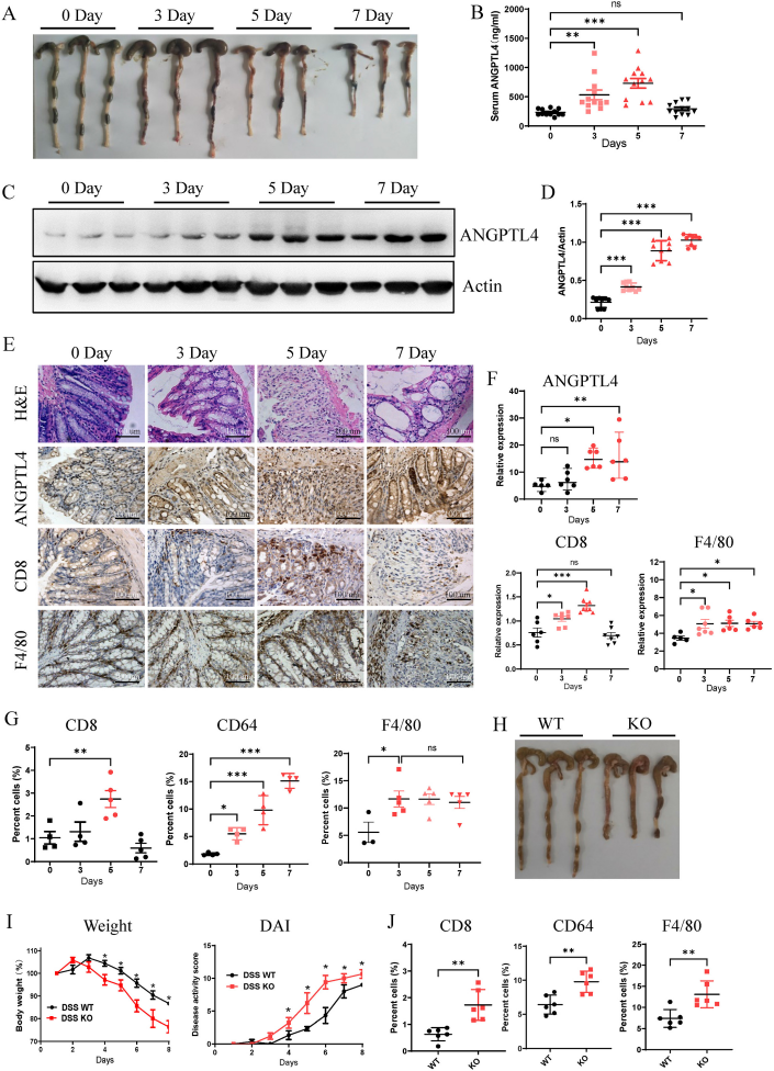 图 3. Variations of ANGPTL4 levels in mice with DSS-induced colitis[11].
