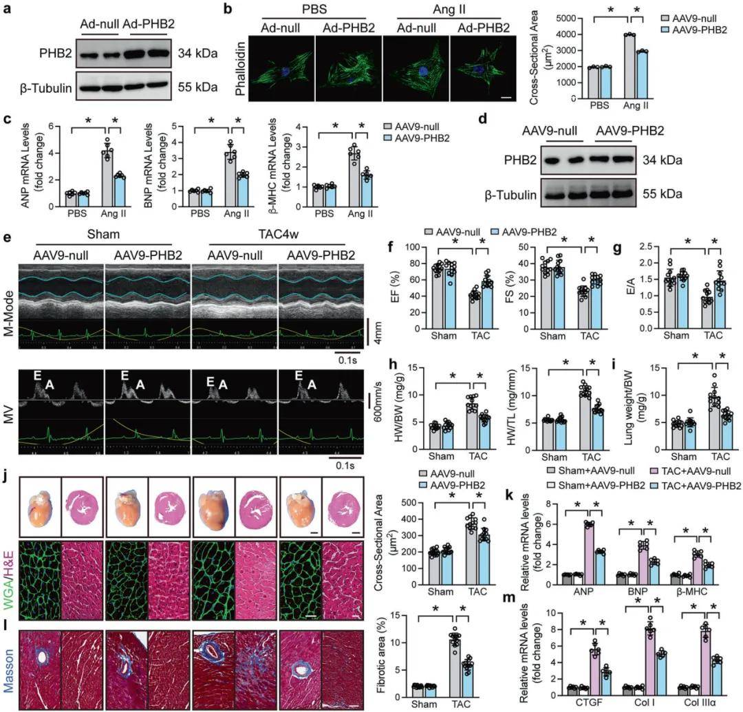 图1. PHB2过表达减轻了体外心肌细胞肥大和体内心脏重塑