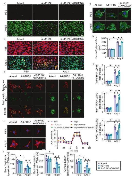 图3. PHB2过表达通过TOMM40缓解分离心肌细胞线粒体功能障碍