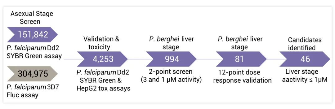 图 5. 针对恶性疟原虫无性血期寄生虫的定量高通量筛选[4]。