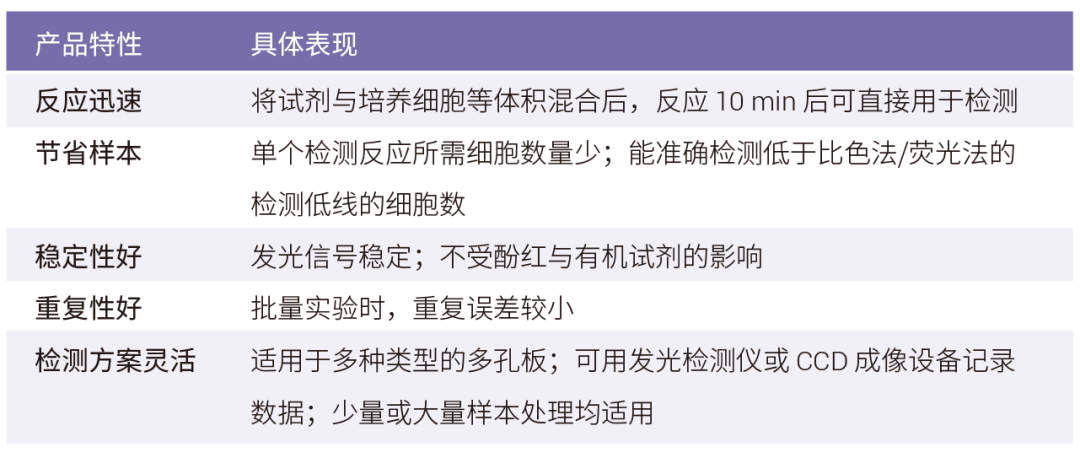 表 2. MCE Cell-ATP 检测试剂盒产品特性