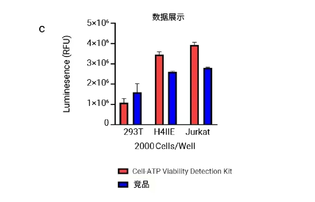 图 6. MCE Cell-ATP Viability Detection Kit 与同类产品(竞品)对比测试结果。