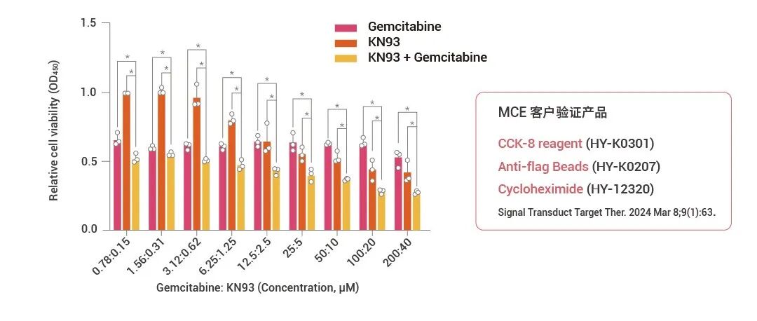 CCK-8 检测细胞活力发现 KN93 可以增强 Gemcitabine 对 CCLP1 的敏感性。