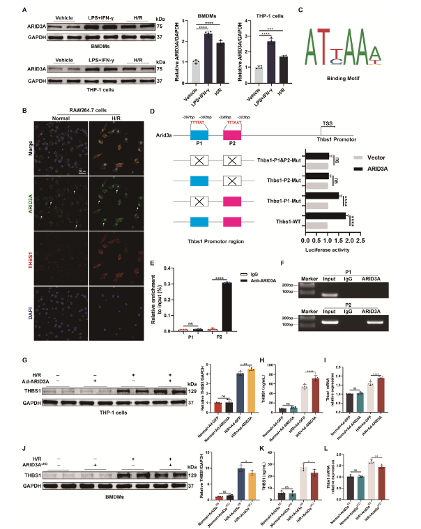 2、ARID3A在转录水平调节M1巨噬细胞中THBS1的表达