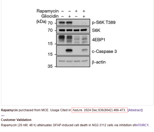 基础机制验证:作为阳性对照试剂,用于筛选新型 mTOR 抑制剂或验证通路抑制剂的特异性。