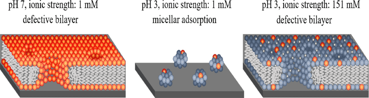 图1. Lauroyl-L-carnitine在不同pH缓冲液中形成胶束的情况[5]