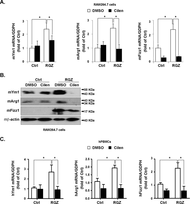 Cilengitide partially inhibited rosiglitazone-induced M2 polarization.