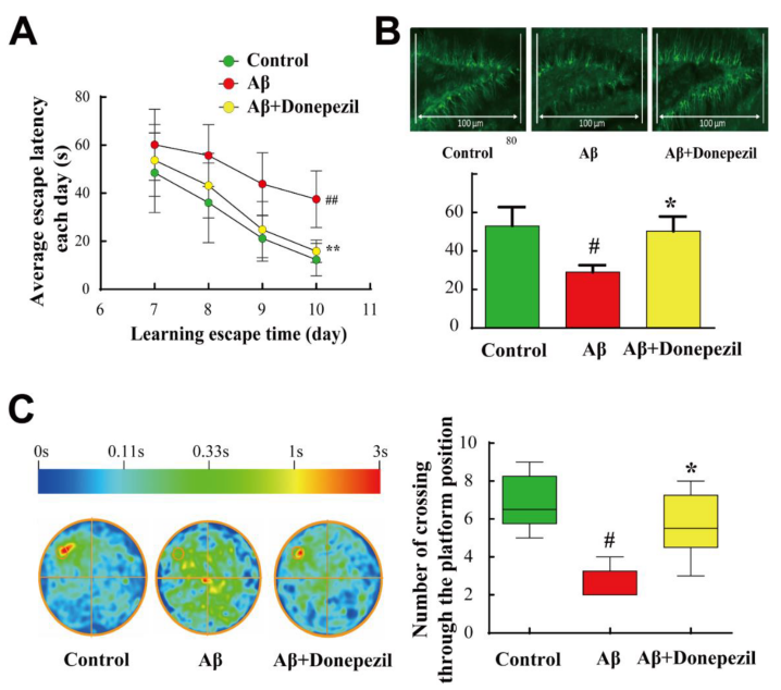 图 1. Donepezil可以改善Aβ25-35肽诱导的小鼠AD模型的水迷宫测试表现[3]