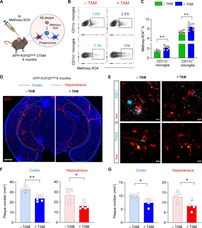 图 5. Microglial FIT2 deficiency reduces Aβ load in the AD brain