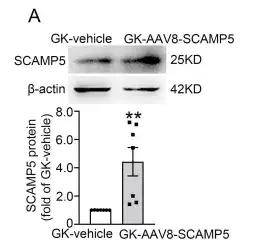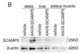 AAV8-Insulin1-SCAMP5增强了胰岛中SCAMP5的蛋白表达