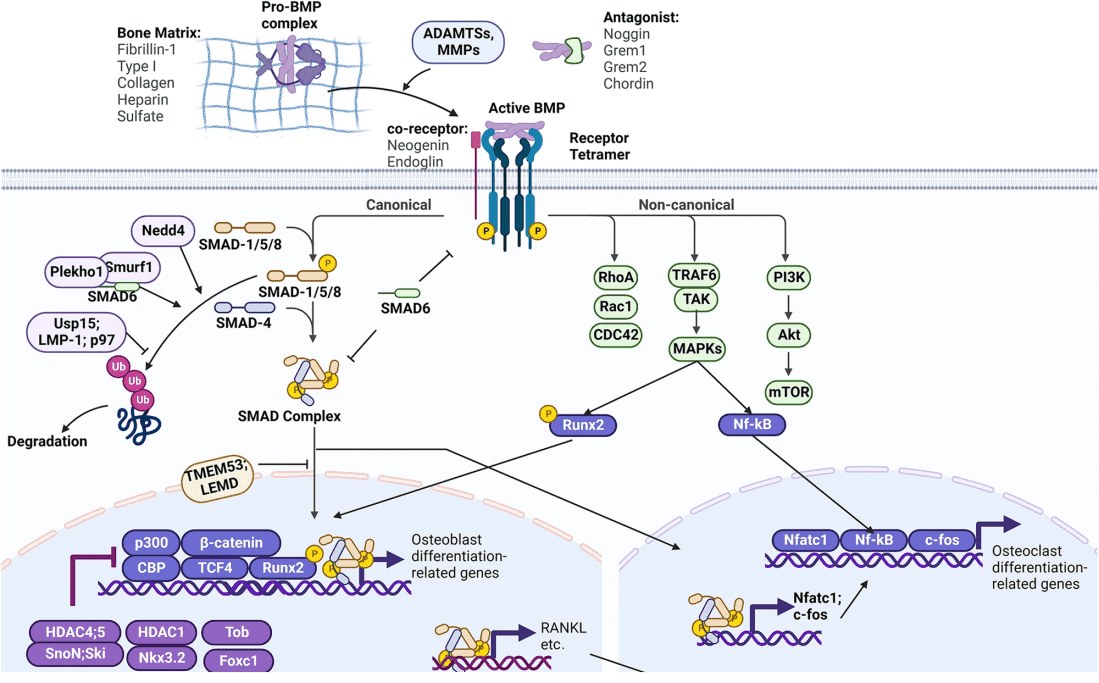 [2] Mengrui Wu, Shali Wu, Wei Chen, et al., The roles and regulatory mechanisms of TGF-β and BMP signaling in bone and cartilage development, homeostasis and disease, Cell research 34(2) (2024) 101-123.