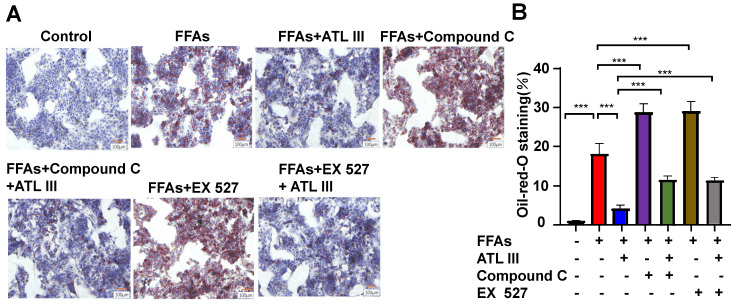 图3. Inhibition of AMPK or SIRT1 represses the inhibitory effects of ATL III on hepatic lipid deposition in FFAs-induced HepG2 cells.[3]