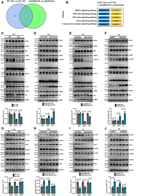 2、OTUD7a通过靶向激活TAK1-JNK-P38信号通路,调控病理性心肌肥厚