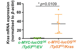 RT-qPCR验证c-MYC-lucOSOE/Tp53KO/Kras肿瘤野生型Kras mRNA的过表达