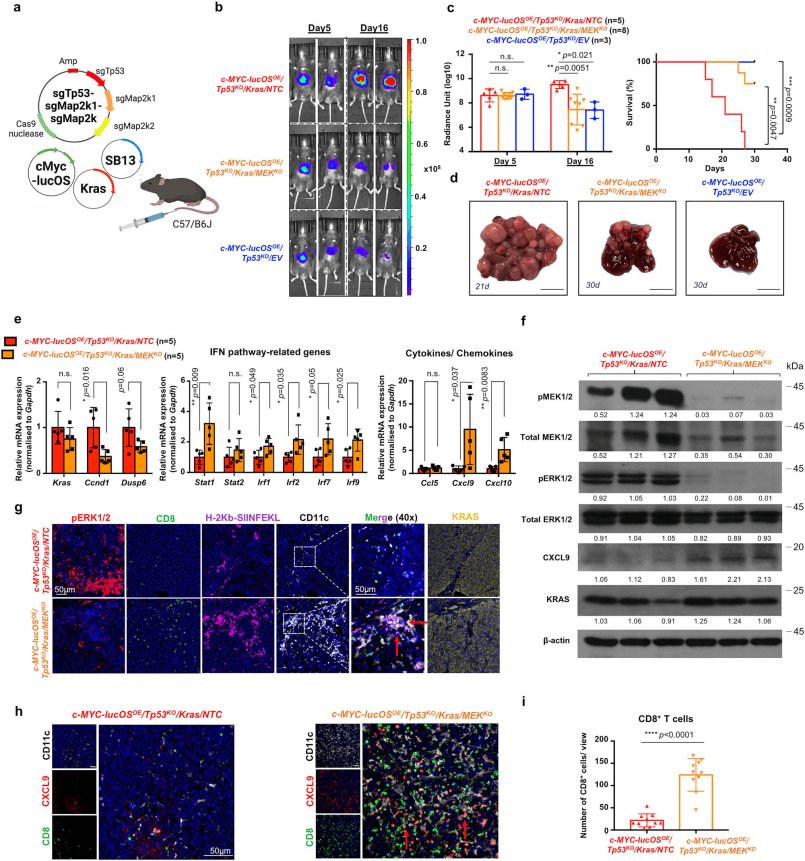 3、体内MEK1/2敲除挽救野生型KRAS介导的免疫抑制性肿瘤免疫微环境并增强干扰素应答