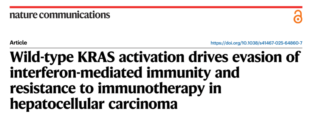 肝细胞癌是世界上第三大致命性癌症和第六大常见癌症。近年来,免疫检查点抑制剂(ICIs)在晚期HCC治疗中展现出潜力,提高了存活率,但仅部分患者受益。越来越多的证据表明,致癌通路的激活会导致肿瘤免疫微环境(TIME)恶化,最终引发免疫治疗抵抗。2025年11月11日,香港理工大学Terence Kin Wah Lee团队在Nature Communications(IF 15.7)上发表了题为“Wild-type KRAS activation drives evasion of interferon-mediated immunity and resistance to immunotherapy in hepatocellular carcinoma”的文章。研究揭示了野生型KRAS在免疫逃逸的小鼠肝癌中的作用,靶向野生型KRAS信号结合ICIS可能是晚期肝癌患者的一种有效治疗策略。