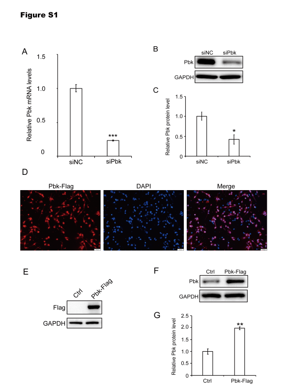 C2C12细胞中慢病毒介导的Pbk敲低和Pbk-Flag过表达效率检测效果