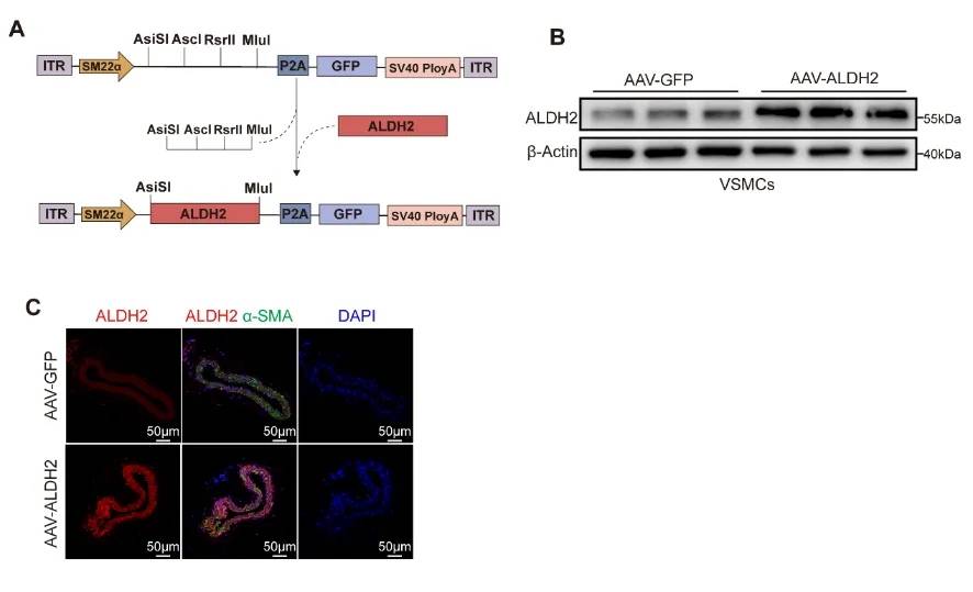 SMC特异性ALDH2过表达AAV的构建与转染效率验证