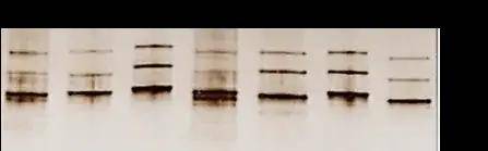 AAV纯度可以通过灵敏的银染方法进行检测。AAV衣壳蛋白含有3种亚基VP1(82kDa)、VP2(72kDa)、VP3(62kDa),且所占比例为VP1:VP2:VP3=1:1:10。因此,一个纯度高的AAV在SDS-PAGE分析时仅显示三条带。