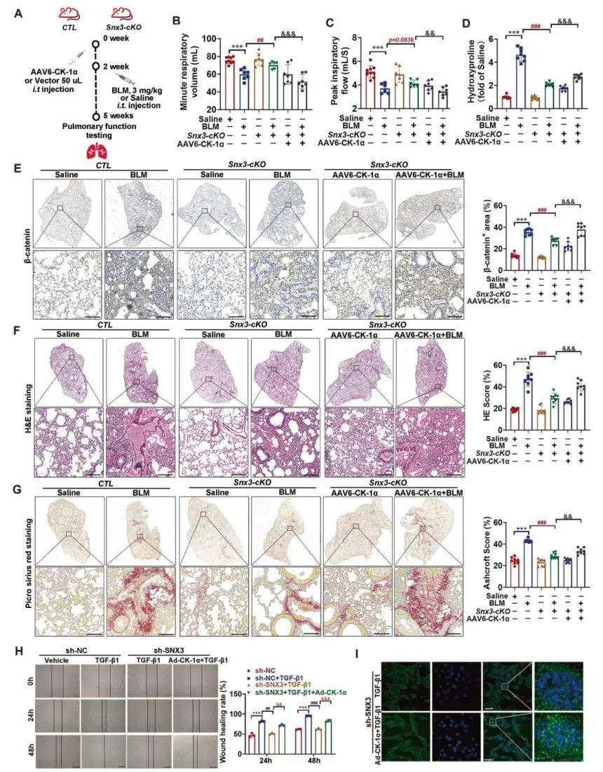 图2. SNX3/CK-1α轴诱导Wnt/β-Catenin信号通路激活与肺纤维化