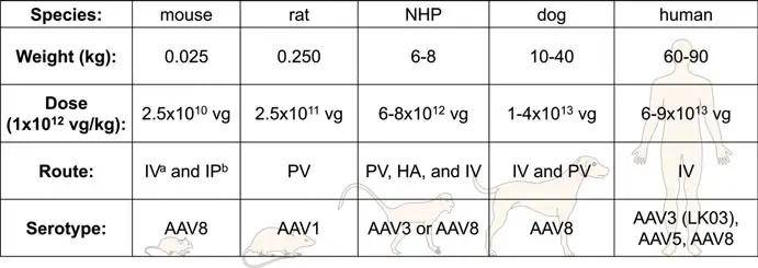 图二:推荐的AAV肝脏注射方式和血清型种间比较