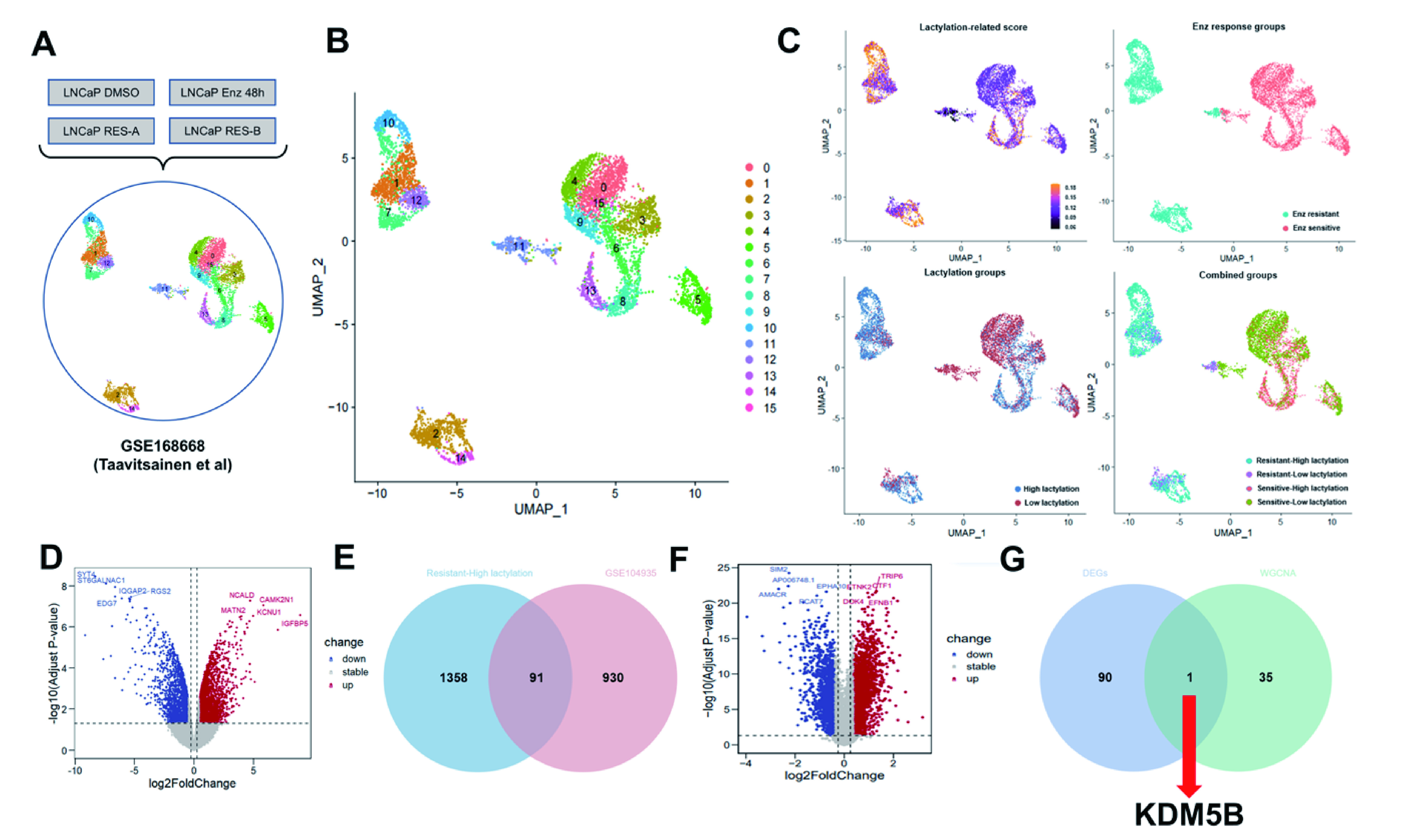 图1:在高乳酸化代谢的EnzR PCa亚群中识别KDM5B
