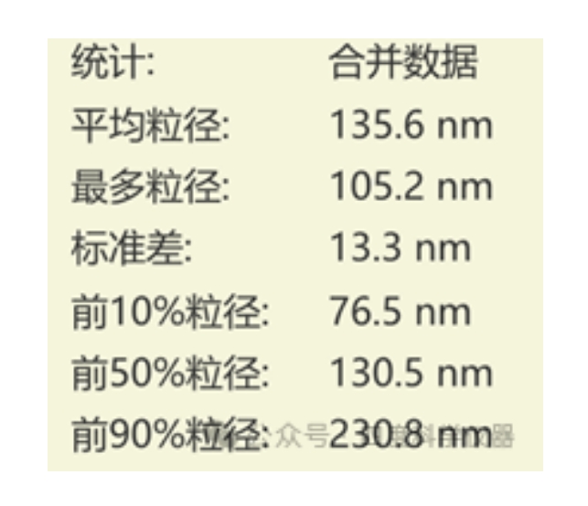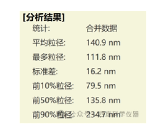 结果显示,加热煮沸后,氢纳米气泡平均粒径140.9 nm,最多粒径111.8 nm,主要分布在0-300 nm区间,其中100-200 nm区间占比64.35%。颗粒浓度为2.07×10⁸ particle/ml,每帧平均颗粒数72.3。