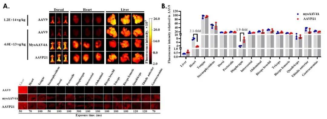 3、AAVP21:肌肉/心脏精准靶向,转导效率是AAV9的5倍以上