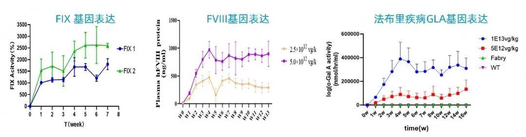 体外研究显示,AAV843对原代肝细胞的转导效率显著优于多种天然血清型,包括AAV1、AAV2、AAV6、AAV7、AAV8和AAV9;并且与已经获批上市的几款血友病基因治疗产品所用的天然AAV5血清型相比,其对肝细胞系L02和Huh7转导效率更加显著。体内实验表明,AAV843特异性靶向小鼠肝脏组织,且能介导目的基因的持久高效表达。此外,AAV843在大鼠及猴子的关节组织中同样实现了高效基因递送,其转导效率远高于AAV5和AAV9,展现出其在肝脏及关节靶向应用中的双重潜力。