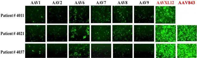 AAV843 壳蛋白在人类原代肝细胞中的感染效率最高