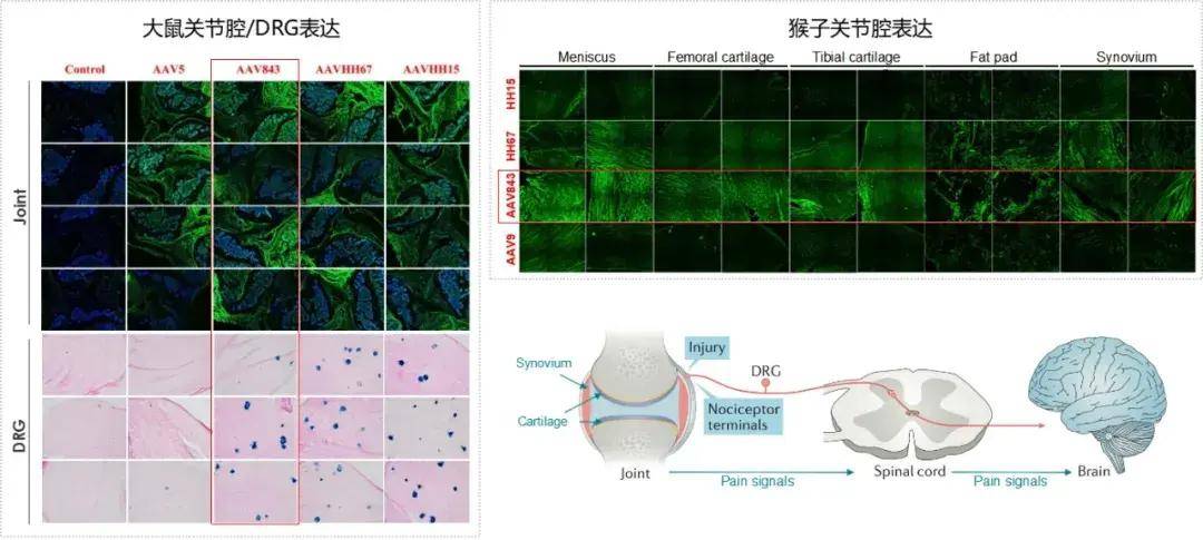 AAV843对大鼠、猴子骨关节组织的感染效率