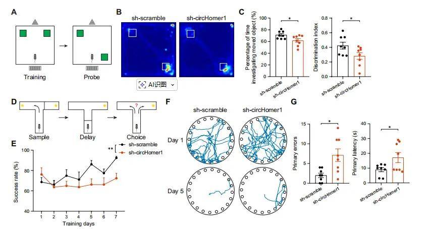 1.CA1区circHomer1缺失损害空间学习和记忆