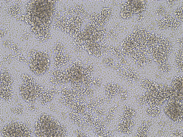 (2)取本产品,先将其离心(1800 rpm,8 min)收集,弃上清,细胞用5 ml完全培养基混匀,以1×106/m密度进行接种,于37℃、5%CO2培养箱过夜培养;