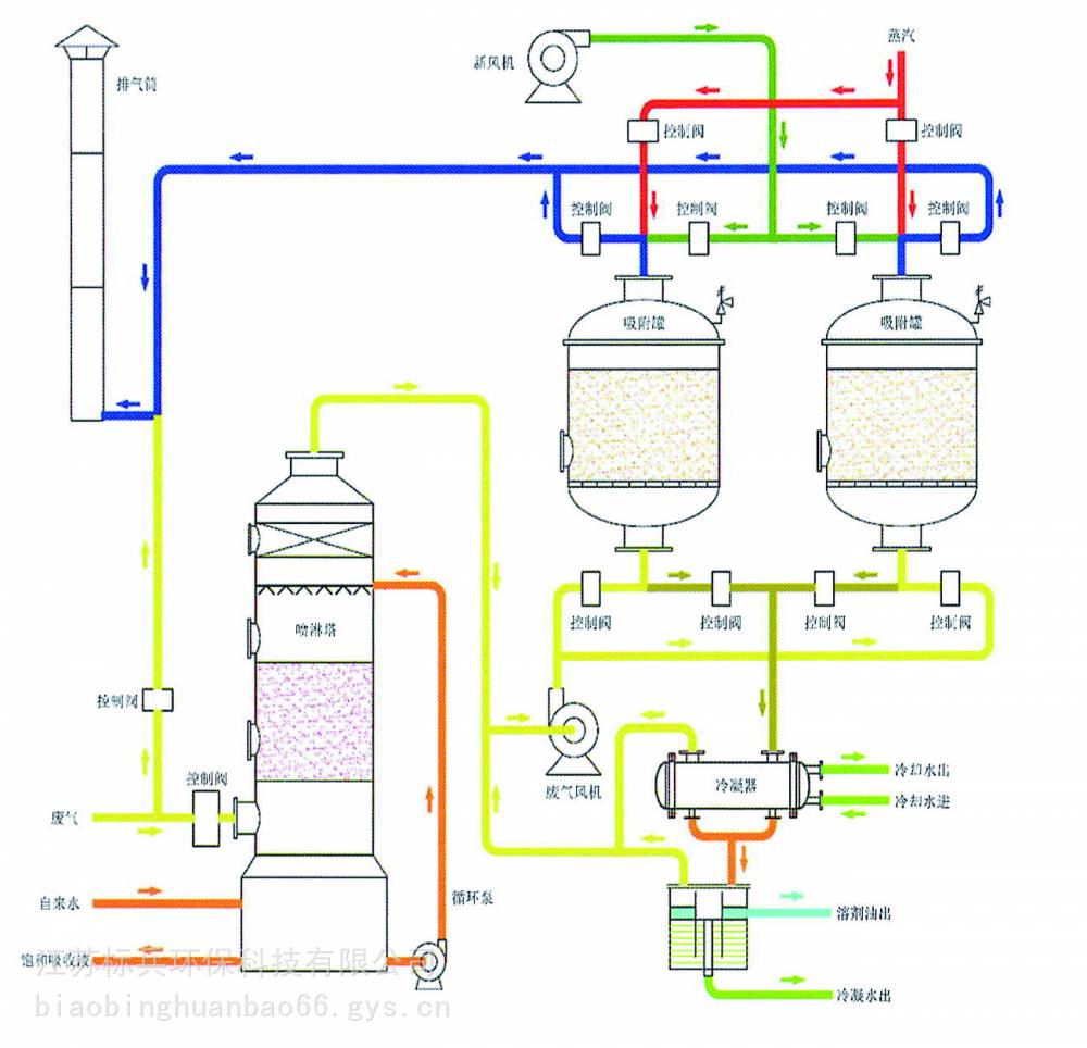 有机废气通过树脂吸附后,接近饱和的吸附剂经过热蒸汽反吹进行脱附再生,经脱附出来的有机气体与蒸汽经冷凝、分离,可回收有机液体。吸附法能够有效控制废气中有机物的去除效率。