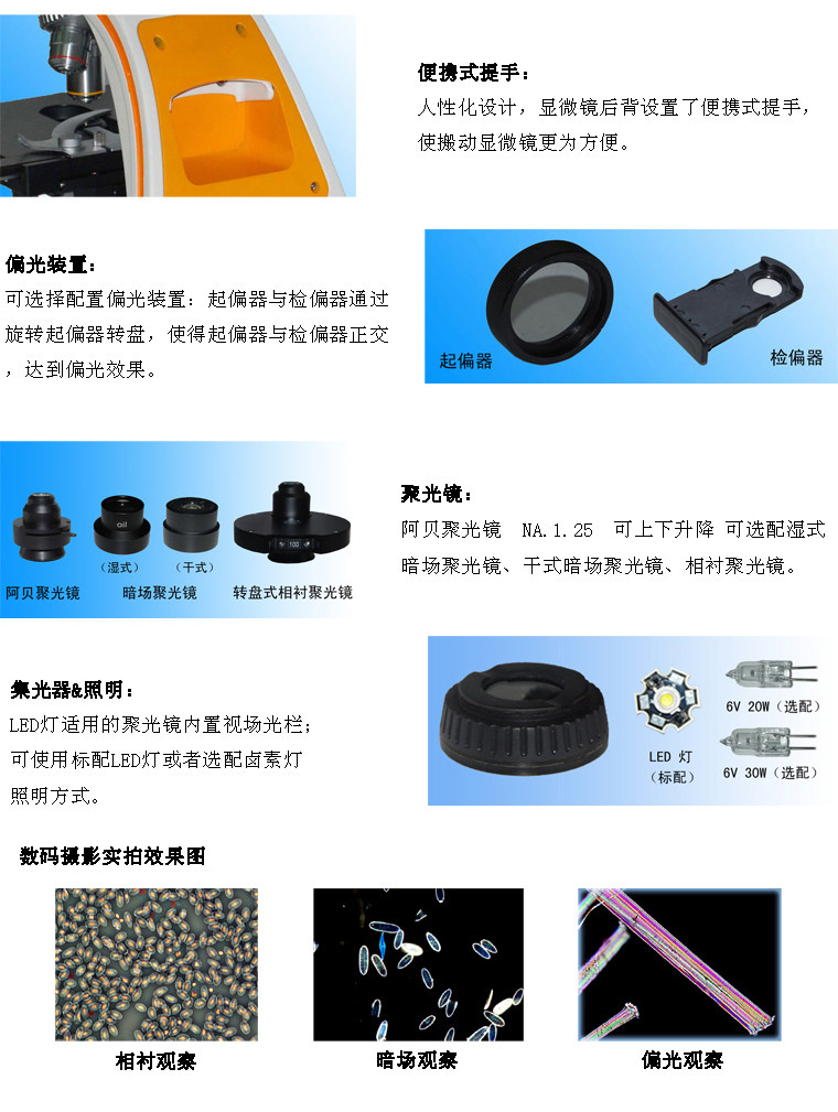 ★ 模块化设计,可选配特殊观察附件,如:简易偏光装置和相衬装置。