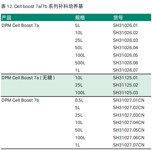 目前补料批培养已成为蛋白药物生产的最常用方式。在批培养过程中,适当添加补料可明显提高产量。HyClone Cell boost 系列补料平台包含cell boost 1-6,7a/7b。每种补料均为代谢途径设计开发,为不同的用途提供相应的营养需求。在实际应用中,可根据不同细胞的生理状况,进行不同的搭配组合,以达到最佳的产量。补料培养基均为化学成分限定,并不含动物源成分的培养基(干粉)。